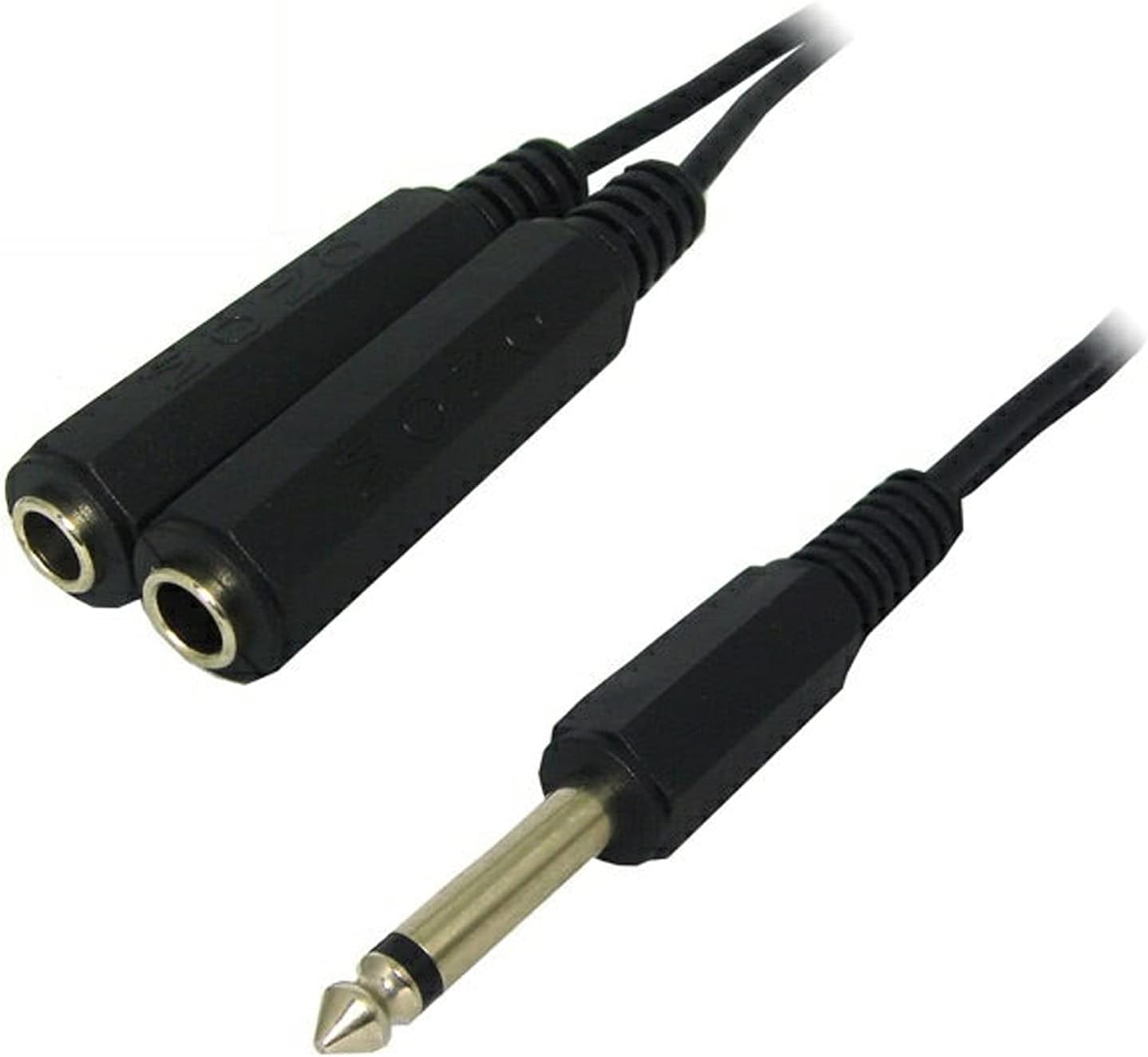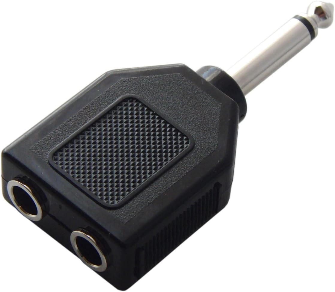 ギターの出力をふたつに分けることができれば、いろいろと遊び方がありますね 異なる音質の二種類のアンプを同時に鳴らすとか 片方をプリアンプに繋いでライン出力、片方はアンプからマイクで音を拾ってミキサーで混ぜるとか 片方だけエフェクトをかけて、片方は原音だけにして、ミキサーで音量バランスをとるとか 異なるエフェクトを並列でかけて混ぜるとか しかし、このギターの出力を分岐するというところで、悩ましい問題に突入します・・・(笑) 具体的にはどうするか。 (A)まず考えるのが、単純にY字にケーブルを分岐してしまう。 ↓こんな変換アダプタを使ってもいいですね。
