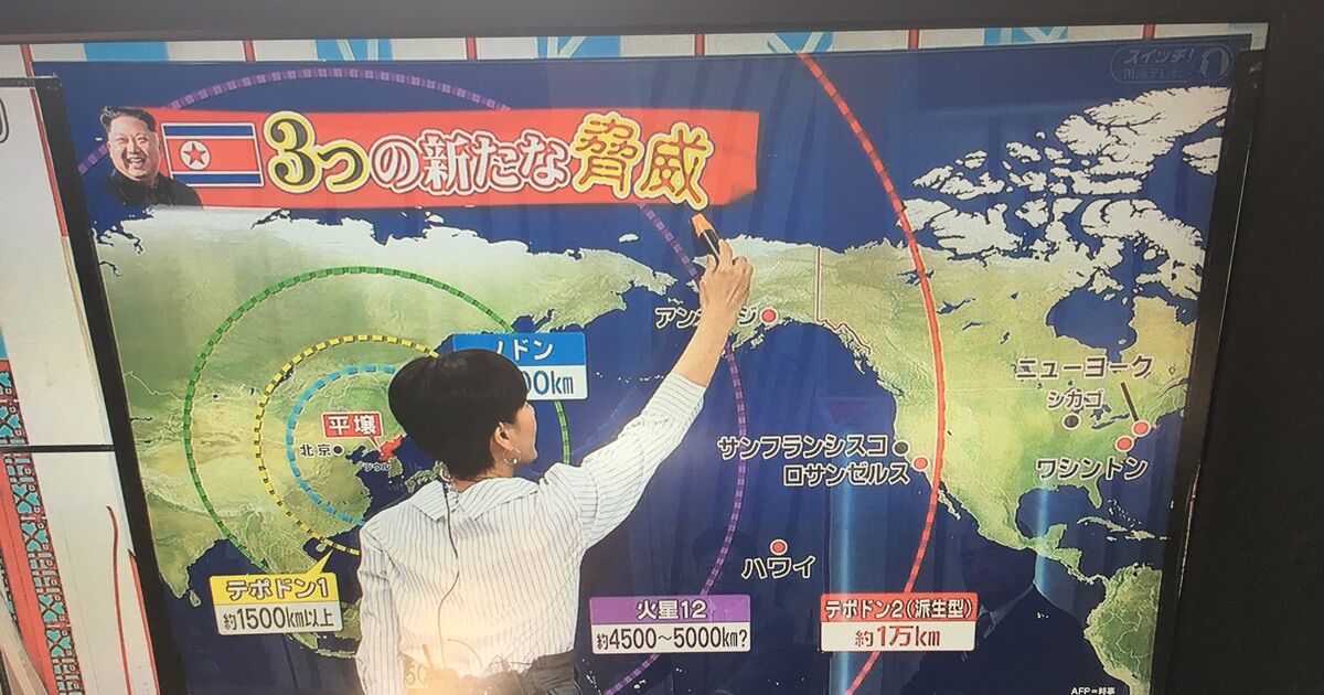北朝鮮のミサイル発射、正距方位図法で見るとこうなる